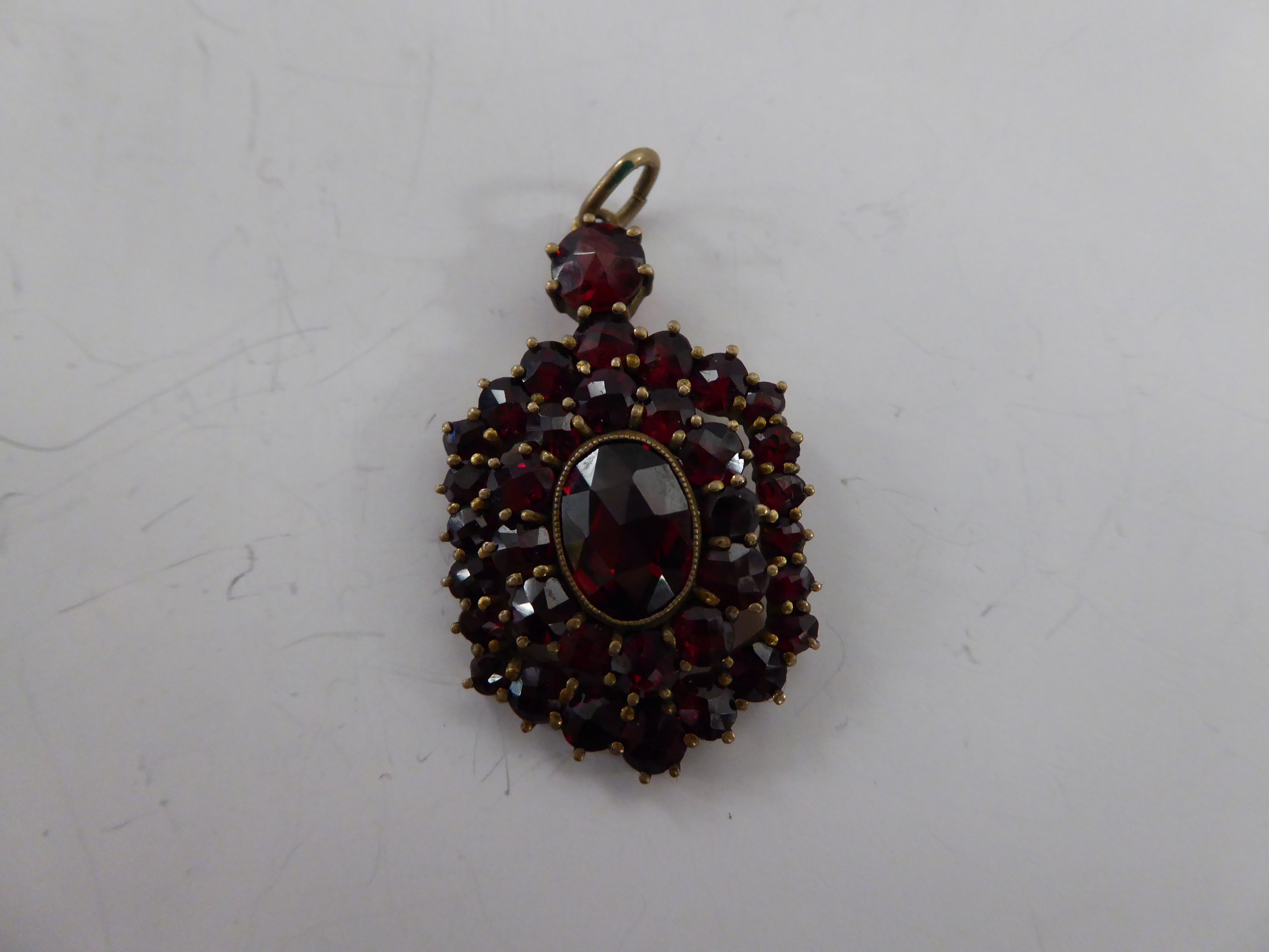 Attraktiver Granatanhänger mit großem Zentralstein, Länge ca. 2.5 cm mehr