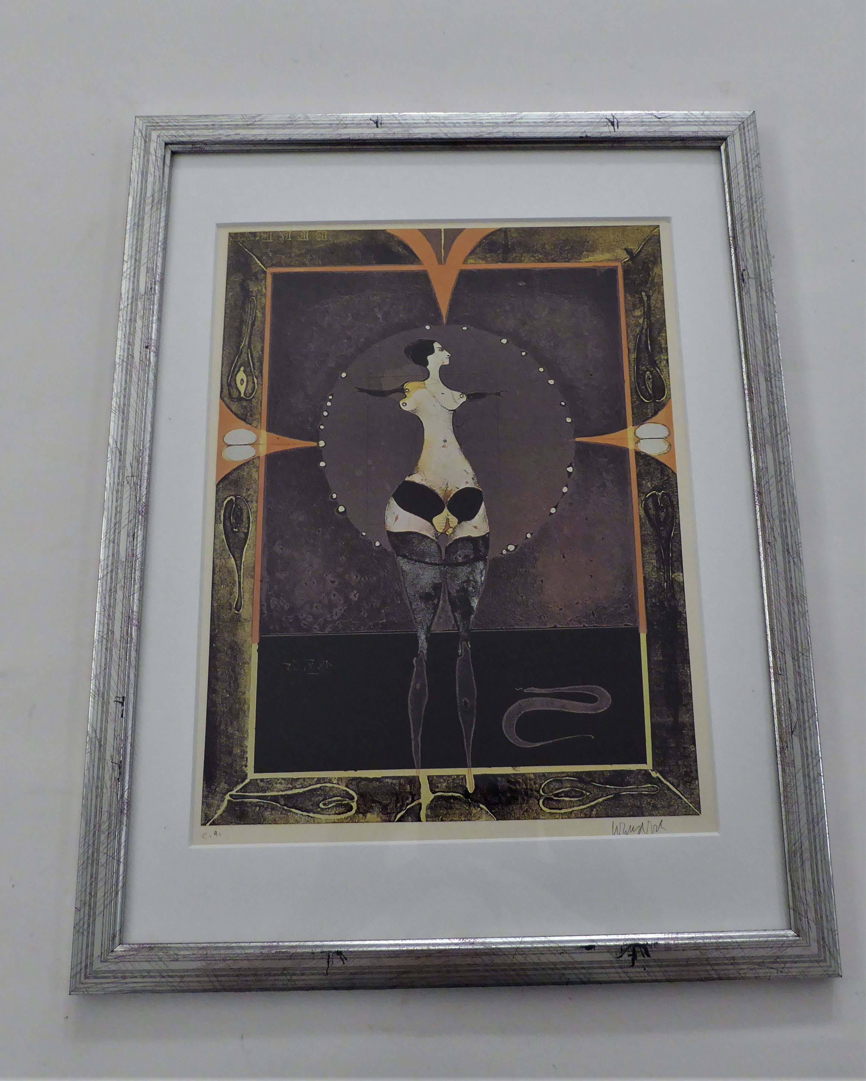 Unter Glas gerahmte Lithographie von Paul Wunderlich, sign. e.a., 43 cm x 33cm