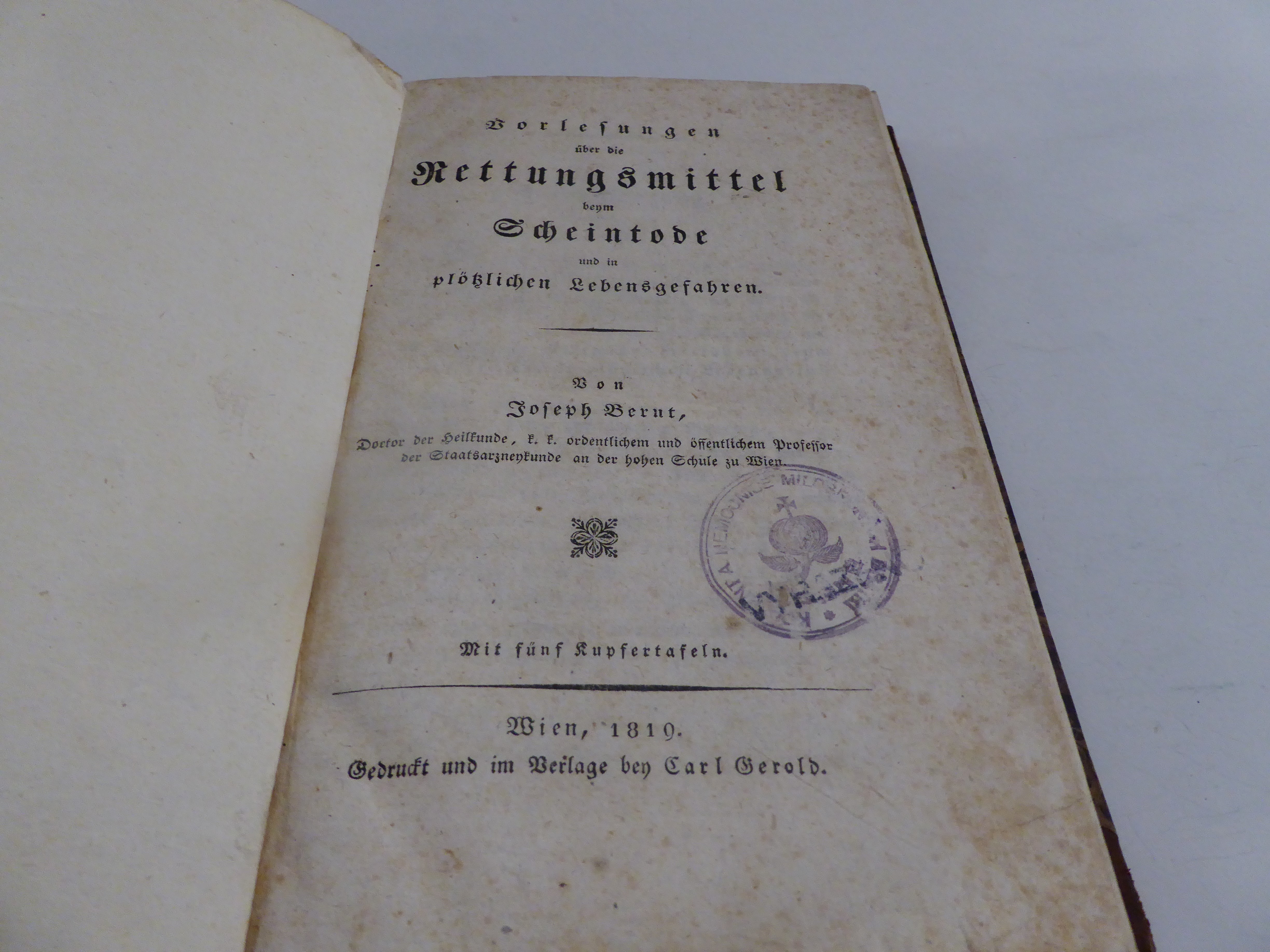 J. Bernt 1819, Erstauflage, mit 5 Kupfertafeln, sehr altes Lehrbuch der Notfallmedizin, altersentsprechend erhalten